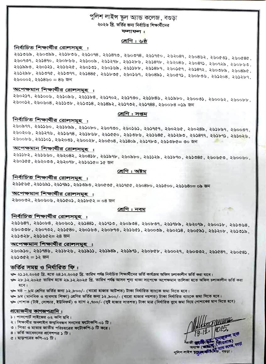 | 1 | 18-Dec-2025 | ভর্তির ফলাফল (High School ) | ||